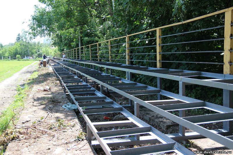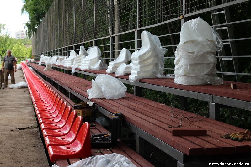 Была демонтирована часть старой конструкции, закреплены новые несущие элементы и пластиковые сидения. Также за двумя трибунами во всю их длину появилась металлическая шестиметровая сетка, которая будет препятствовать вылету мячей за территорию стадиона.